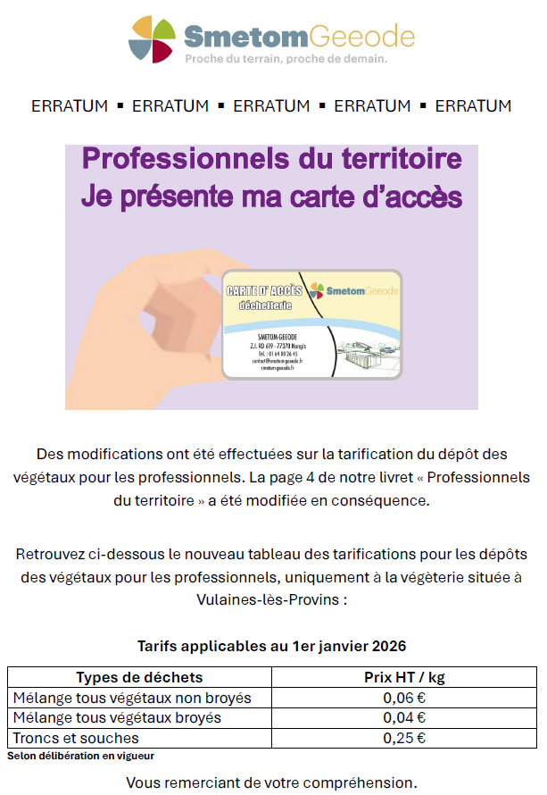 Erratum : tarifications du dépôt des végétaux pour les professionnels